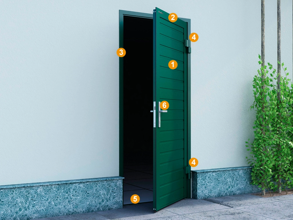 Алюминиевые профили дверной коробки обеспечивают надежность и защиту конструкции от коррозии.