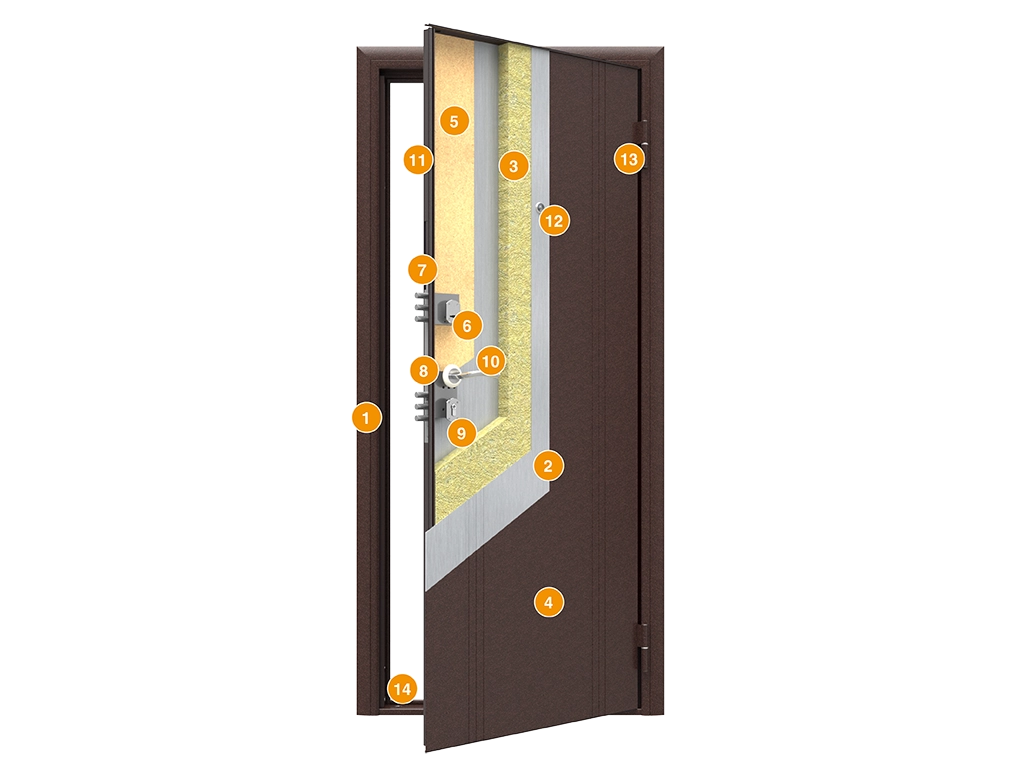 Квартирная дверь модели «Оптим» рассчитана на 20 лет активной эксплуатации. Поверхность изготовлена из оцинкованной стали с антикоррозийными свойствами. Два контура термоэластопласта защищают помещение от холода и шума.