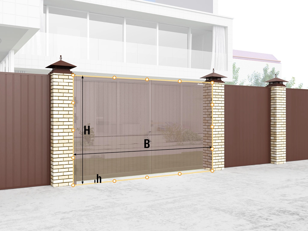 h — просвет (расстояние от нижнего края створки до уровня земли). Рекомендуемая величина — 100 мм.